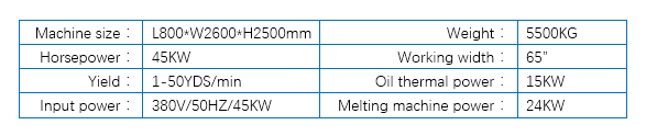 The cloth hot melt adhesive compound machine can be used for the compounding of cloth, TPU and PE plastic film to produce various functional cloth products. It can be used for the compounding of plain weaving, knitting, elastic cloth and cloth. It is suitable for garments, underwear, bedspread of household textiles, sofa, cloth for shoes, boxes and bags, industrial cloth, and cloth. Compound medical and health cloth. The advantages of this equipment and traditional compound machine are glue environmental protection, full automation, tension control, automatic edge alignment, product surface smoothing and edge neatness, PLC human-machine interface operation is simple, can access the characteristic data of each material, and completely realize the operation without a master.
